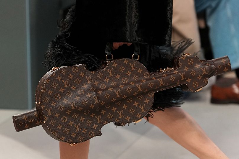Les effets fictifs ont été emballés dans des mini-troncs à rayures, des sacs à rouleaux, des étuis en violon LV Monogram et des sacs à bandoulière. La piste? «Trans Orient Express de Kraftwerk. Les silhouettes en mouvement ont été filmées et projetées à travers les fenêtres sur les planchers au-dessus, avec le défilé humain puis se dissolvant dans le flou d’un train à grande vitesse. Et tout s’aligne doucement – Hospitality and Travel Group Belmond appartient à LVMH, et l’Orient Express est la cerise au-dessus de son gâteau de portefeuille en expansion.