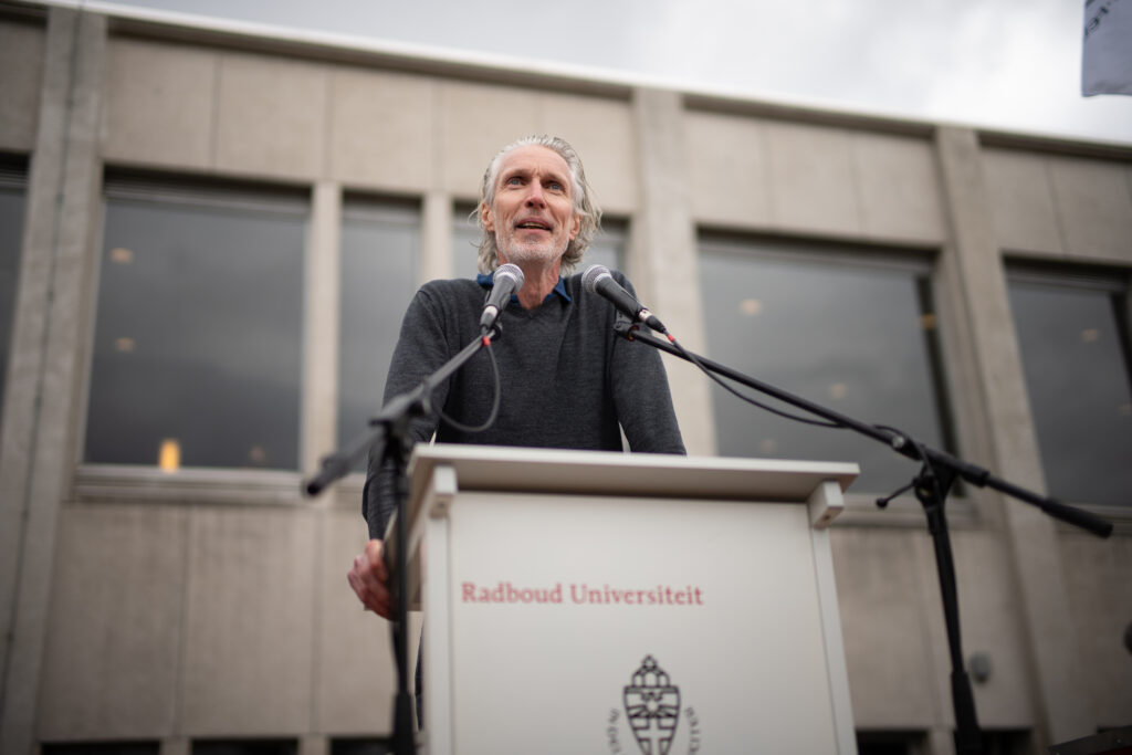 He slips on a pair of black headphones, nods goodbye and turns toward the exit. Outside, he’s already striding across the Radboud campus, talking into the cold evening air — still moving, still making calls, still trying to bend a stubborn system toward change.