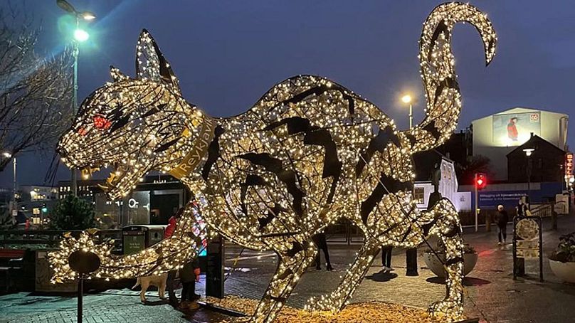 Dans le magnifique centre-ville de Reykjavík, sur la place Lækjartorg se trouve une sculpture géante de chat illuminée appelée Jólakötturinn.