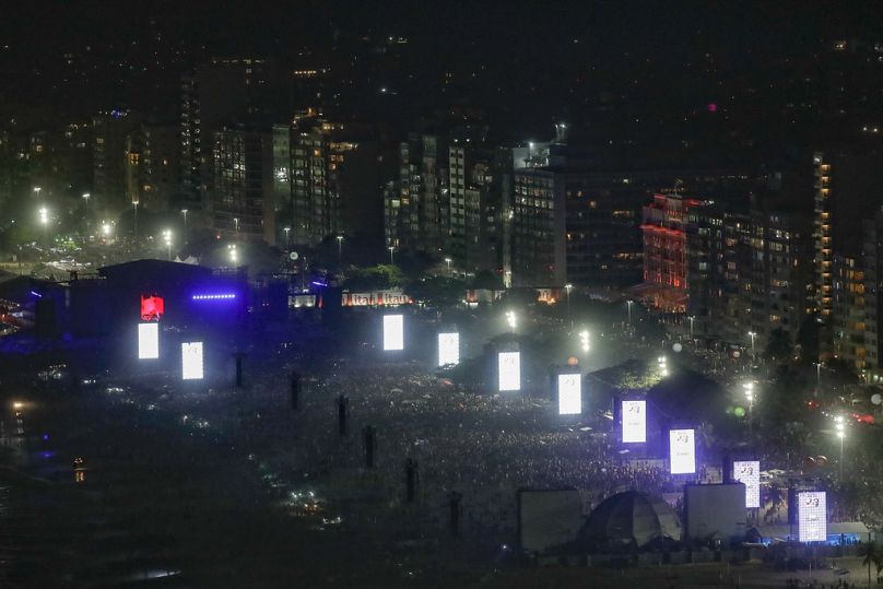 Le spectacle a commencé avec son tube de 1998 « Nothing Really Matters » qui a suscité d’énormes acclamations de la part de la foule compacte sur la plage.