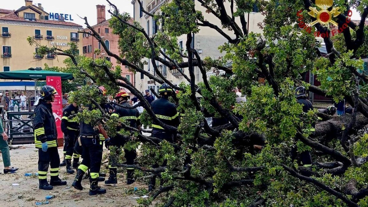Le chêne est tombé sur un groupe de personnes attendant dans une zone ombragée à Piazzale Roma, le dernier arrêt pour les bus et les taxis qui transportent des visiteurs vers et depuis la ville de lagon depuis le continent, ont déclaré des responsables de la ville.