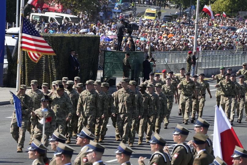 Les politiciens revêtent des chemises vertes et visitent les frontières et les bases militaires. Cette année, les célébrations de la Journée de l’Armée ont duré plusieurs jours et se sont terminées par un grand défilé militaire à Varsovie.