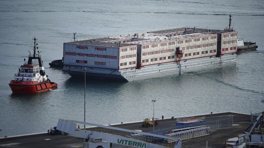La barge, Bibby Stockholm, a été tirée par un remorqueur dans le port de Portland mardi, au large de la côte sud-ouest de l’Angleterre, après que la législation controversée du gouvernement a vaincu la résistance à la Chambre des lords et a été adoptée.