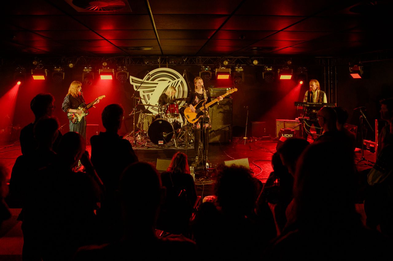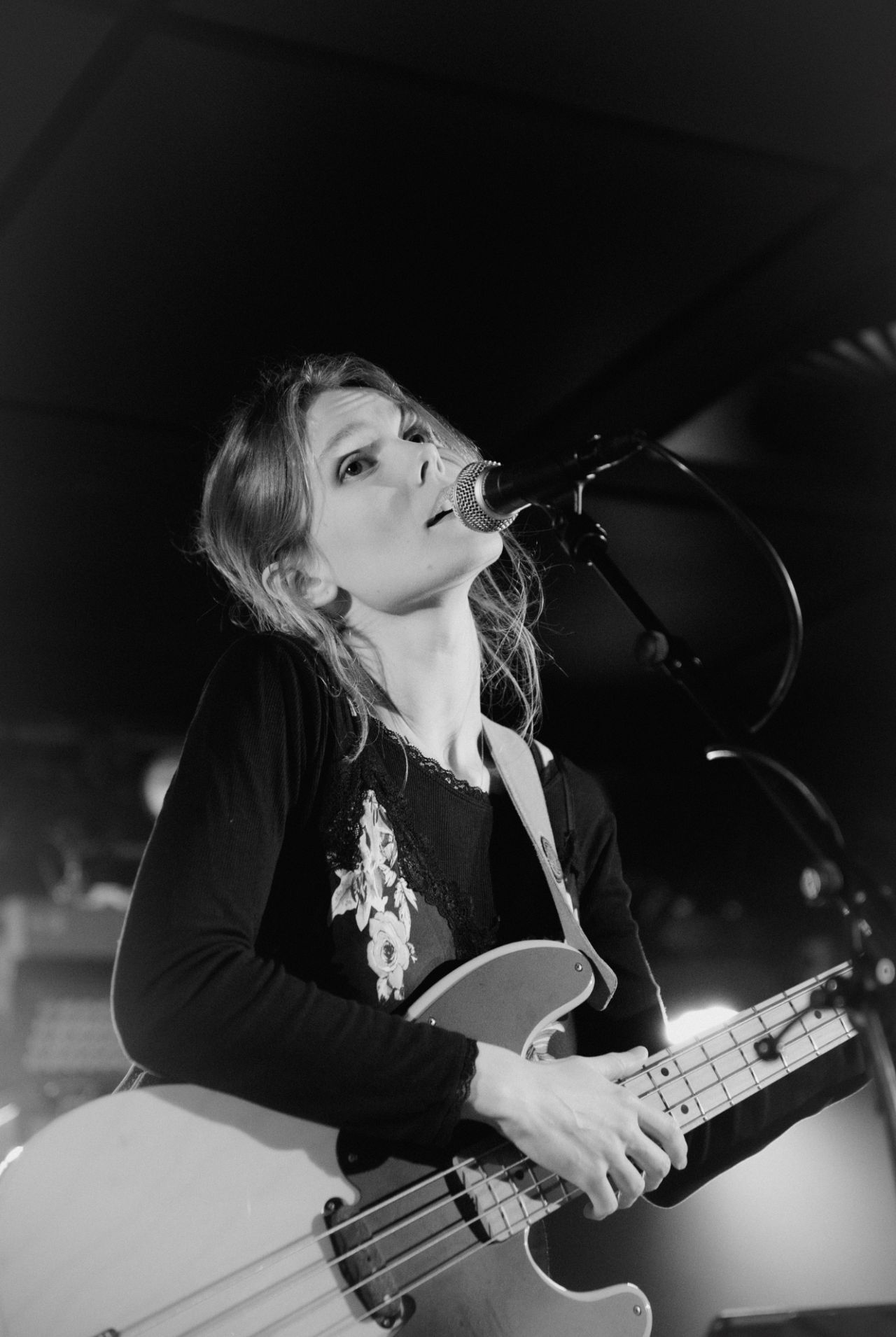À son set – le dernier avant de cesser de tourner pendant un certain temps – la foule néerlandaise est stupéfaite par une cacophonie immersive d’électropop scintillant. Le devant et le centre est Margret. Elle se tient avec une guitare basse, se cachant timidement derrière le poids de l’instrument.