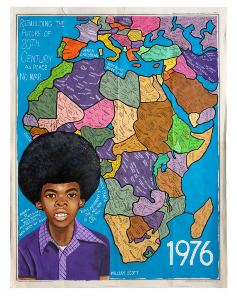 Il y a aussi le travail merveilleusement dynamique de William Scott, un artiste basé à Oakland autistique et schizophrénie, qui travaille chez Creative Growth, l’un des plus anciens et des plus grands centres d’art pour les personnes handicapées dans le monde. Se décrivant comme un architecte, son art est profondément enraciné dans sa propre vie, ses peintures représentant des membres de la famille et des fidèles d’église à des acteurs, des musiciens et des chefs de défense des droits civiques. Dans une grande partie de son travail, il envisage un San Francisco utopique, «louer frisco», proposant de nouveaux quartiers, bâtiments et centres communautaires.