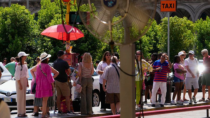 « Il fait une chaleur infernale« Ces ventilateurs aident un peu, mais il fait vraiment chaud », explique Carmen Díaz, une touriste madrilène qui essayait de se rafraîchir avec un ventilateur à l’heure du déjeuner à Rome.