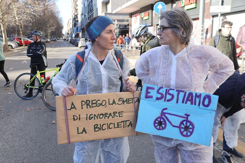 Des cyclistes descendent dans la rue pour manifester à Milan