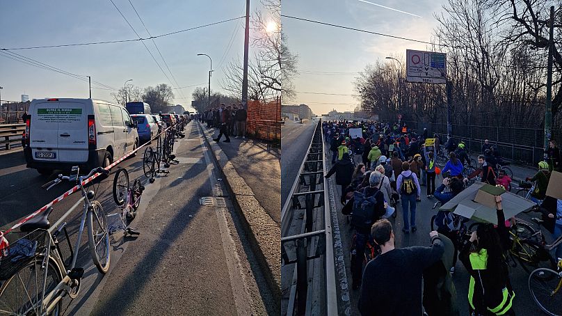 Ensuite, ils ont occupé le Ponte della Ghisolfa, créant la piste cyclable tant attendue avec leurs corps et leurs vélos.