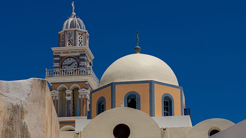 De là, dirigez-vous vers Caldera de Fira où la cathédrale métropolitaine orthodoxe se lève majestueusement dans un ciel bleu.