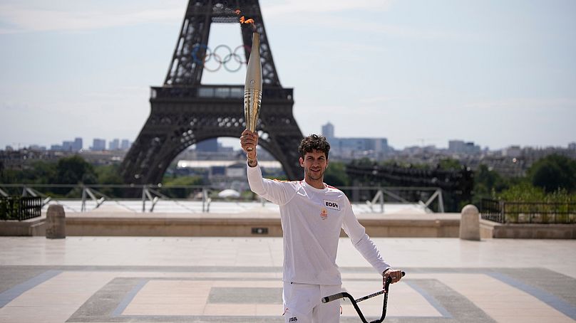 « J’étais très ému », a déclaré le champion du monde de BMX Matthias Dandois après avoir porté la torche devant la tour Eiffel. « Je suis originaire de Paris, j’ai grandi en pratiquant beaucoup de sport et en regardant les Jeux olympiques, et c’était un rêve d’y participer. »