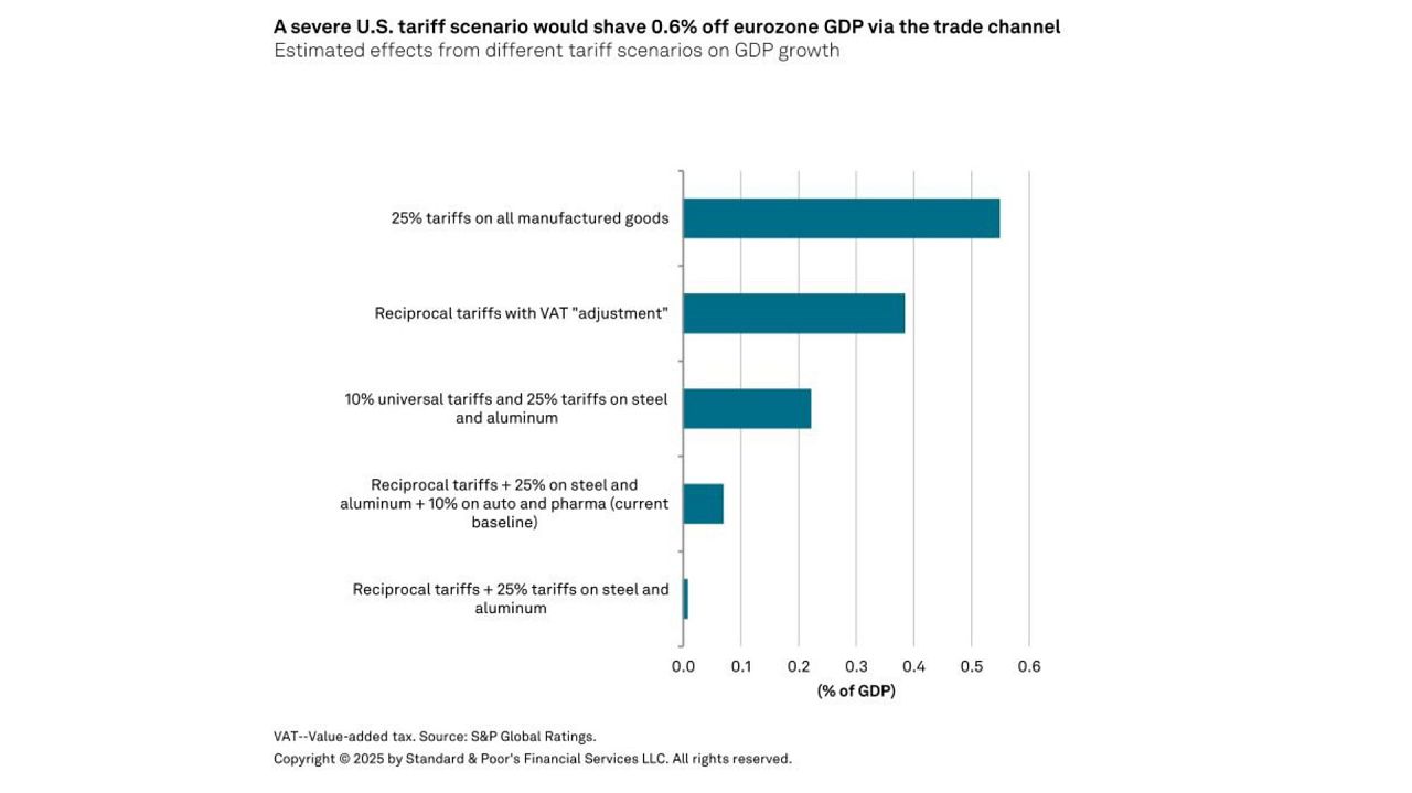 L’incertitude économique devrait réduire l’économie de la zone euro, d’une valeur de 14,6 billions d’euros, par un cumulatif de 0,4% du PIB sur 2025 à 2026, selon le dernier rapport de S&P Global.