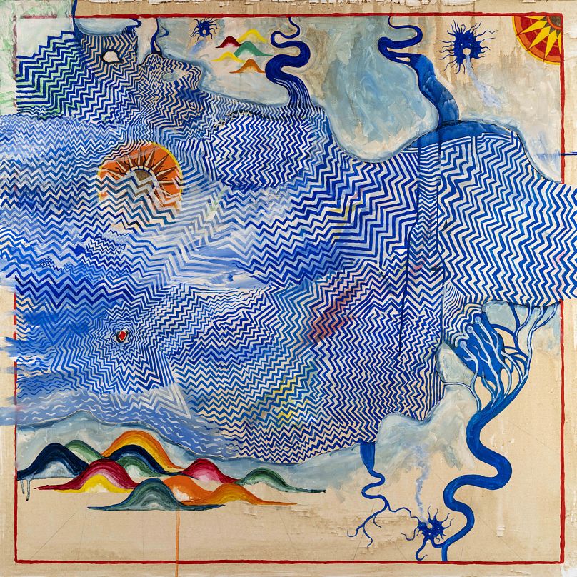 Les œuvres d’art fusionnent la gouache, la détrempe et la poudre de champignon sur toile, présentant un vaste langage de signes et de symboles méticuleusement élaborés par les artistes et complétés par des images de soutien.