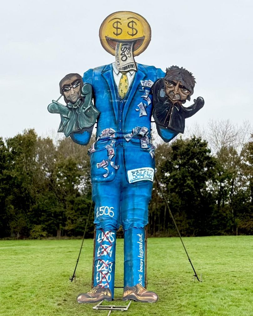 Représentée par un homme en costume d’affaires, avec de l’argent sortant de ses poches et des références aux prix exorbitants des billets et à la gigantesque file d’attente en ligne pour les billets, l’effigie était une réponse pointue à la tarification dynamique des billets de Ticketmaster pour la tournée de réunion Oasis de l’année prochaine.
