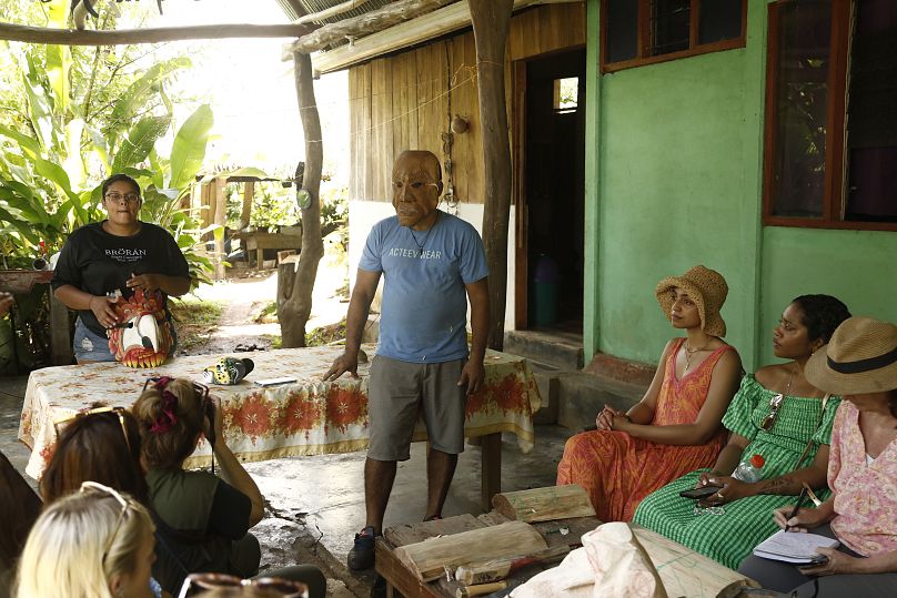 Les voyageurs rencontrent la communauté et apprennent comment ils vivent de la terre depuis plus de 500 ans, sculptent leurs propres masques en bois et savourent un déjeuner fait maison.