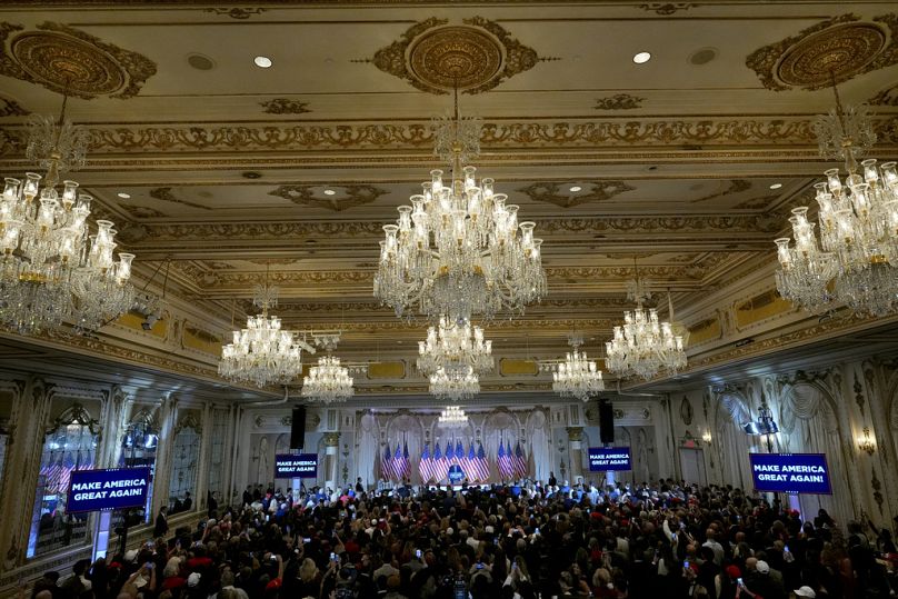 Le domaine de Mar-a-Lago de Trump, quant à lui, était bondé pour une fête de la victoire. Une foule dans la salle de bal a éclaté lorsque Fox News a annoncé que l’ancien président avait remporté la primaire du GOP en Caroline du Nord.