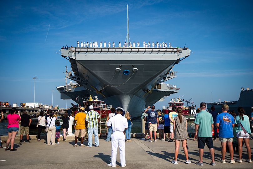 Près de 4 500 marins américains sont partis mardi de la plus grande base de la Marine des États-Unis à Norfolk.