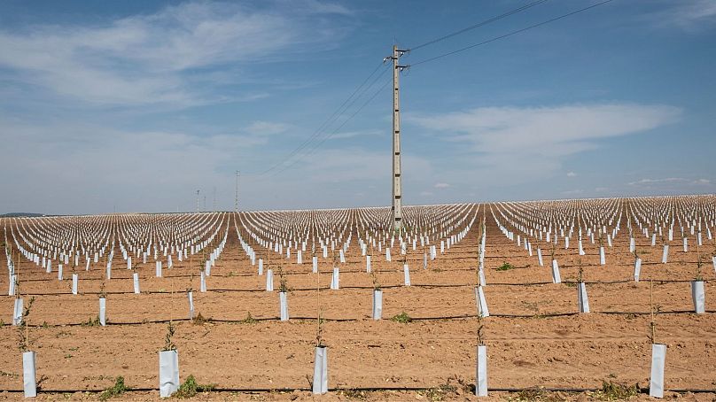 Une plantation d'olivier nouvellement plantée à Brinches, au Portugal.
