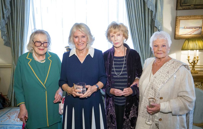 Camilla, duchesse de Cornouailles, deuxième à droite, avec Antonia Fraser, à gauche, Edna O’Brien, deuxième à droite, et Judy Dench lors d’une réception pour « La salle de lecture de la duchesse de Cornouailles »