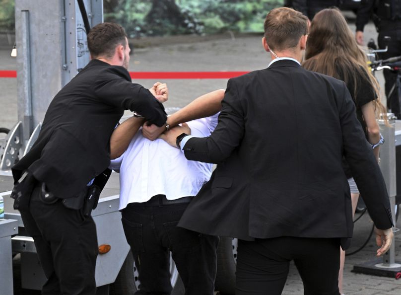 Un homme a été immédiatement poussé au sol par les forces de sécurité, menotté et emmené. Wagenknecht est remontée sur scène et a écrit plus tard sur le réseau social X qu’elle avait peur mais qu’elle allait bien.
