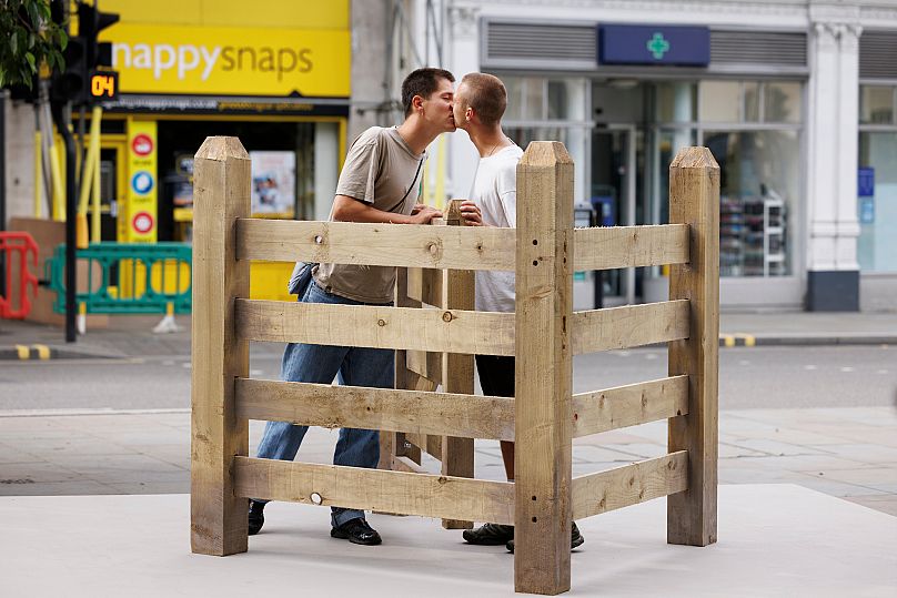 Les nouvelles sculptures de cette année incluent l’œuvre interactive Kissing Gate de Maya Rose Edwards, située à Aldgate Square, qui introduit de manière ludique une porte de baisers rurale dans le paysage urbain, suscitant des rencontres romantiques entre les passants.