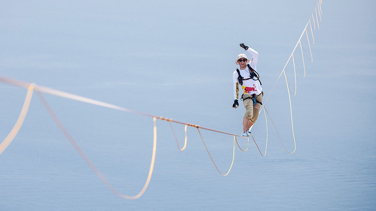 L’athlète estonien de slackline Jaan Roose est entré dans l’histoire mercredi (10 juillet) en devenant la première personne à traverser à pied le détroit de Messine en Italie.