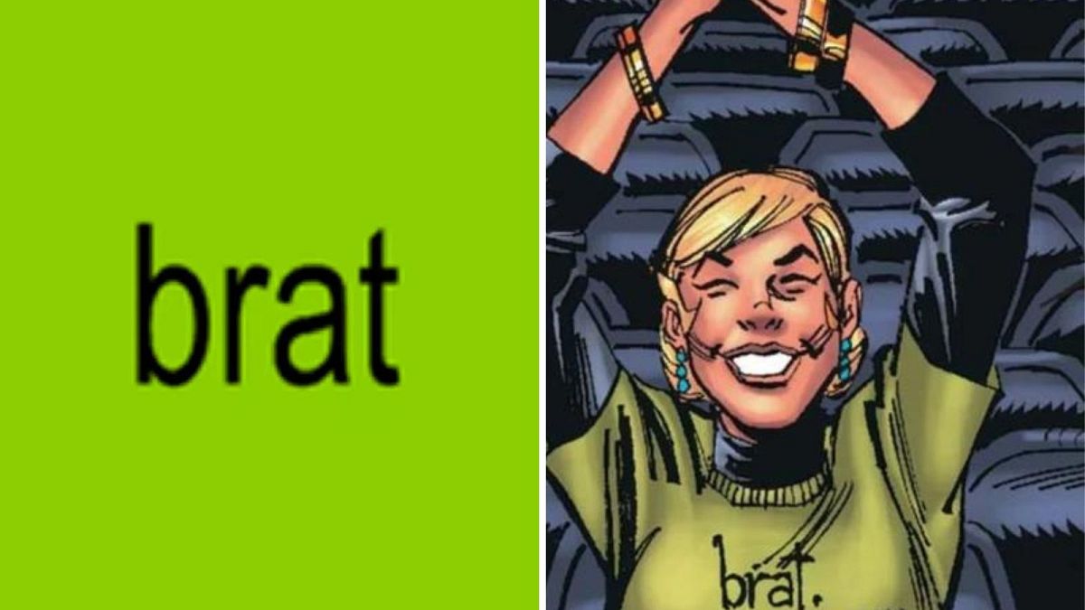 En effet, un numéro de « The Amazing Spider-Girl » – le numéro 4 pour être précis – présente un personnage portant une chemise verte avec le mot « brat » écrit dessus – en minuscules similaires.