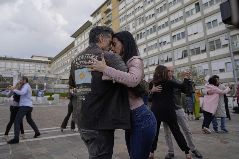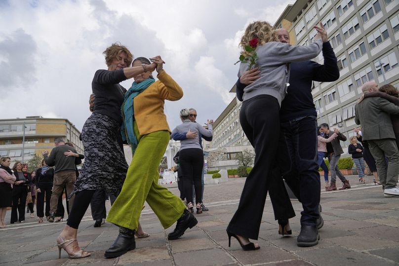 Des dizaines de danseurs de tango se sont rassemblés à l’hôpital Gemelli de Rome pour danser le tango pour le pape François, où il est traité pour une double pneumonie.