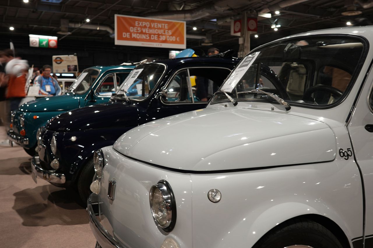 L’inflation est passée. Un stand propose des véhicules à moins de 30 000 € pour attirer les acheteurs et néo-collecteurs.