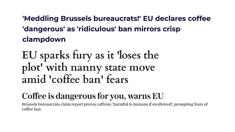 Certains tabloïds ont ravi des craintes que l’UE interdit bientôt le café après que la Commission européenne aurait étiqueté la caféine dangereuse pour la consommation humaine.