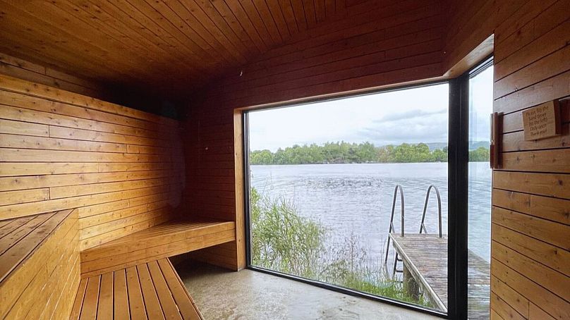 Données dans nos robes à séchage serviette, nous nous sommes dirigés vers la deuxième étape du rituel, qui doit être la Pièce de résistance du sentier: un sauna finlandais planant sur un lac apparemment sans fin.